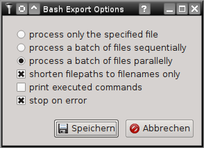 Clicking the [Save] button lets you choose the name and location of the new Bash script. Of course you can open this script in any text editor and modify it to fit your needs. To execute the script you need to make it executable first: